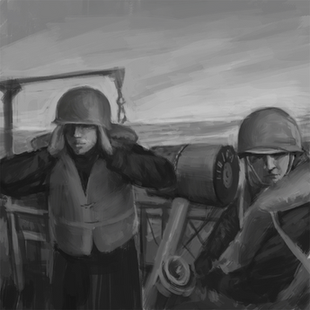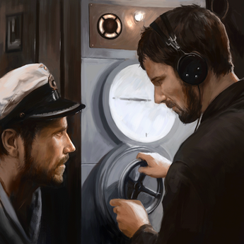 The illustrations were painted in Photoshop, in rich raster detail to capture the raw emotion and tension of each scene. Harsh lighting, broken glass, and anxious expressions reveal the psychological weight on the crew. From the soft green glow of sonar to the haunting gaze of commanding officers, each image reinforces the claustrophobia and humanity of life aboard a sinking vessel.