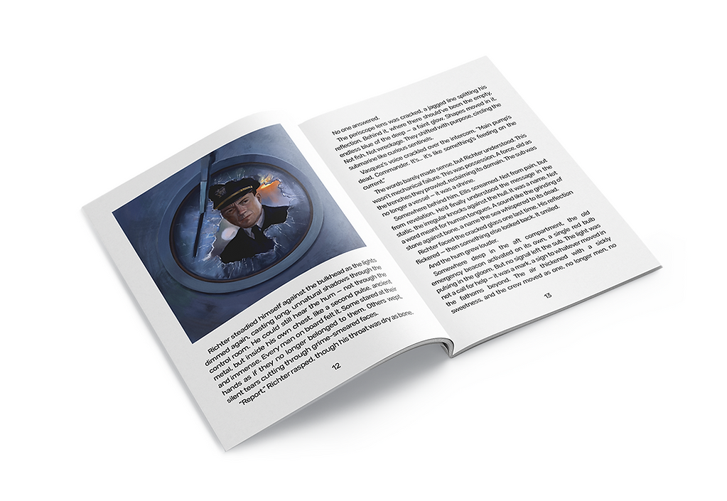 "The Enemy Below" is a gripping science fiction tale of courage, loyalty, and survival under extreme conditions. With its striking, cinematic illustrations and powerful storytelling, this book pulls readers deep into a suspenseful underwater world, where every decision could be the last, and hope flickers like light through fractured steel.